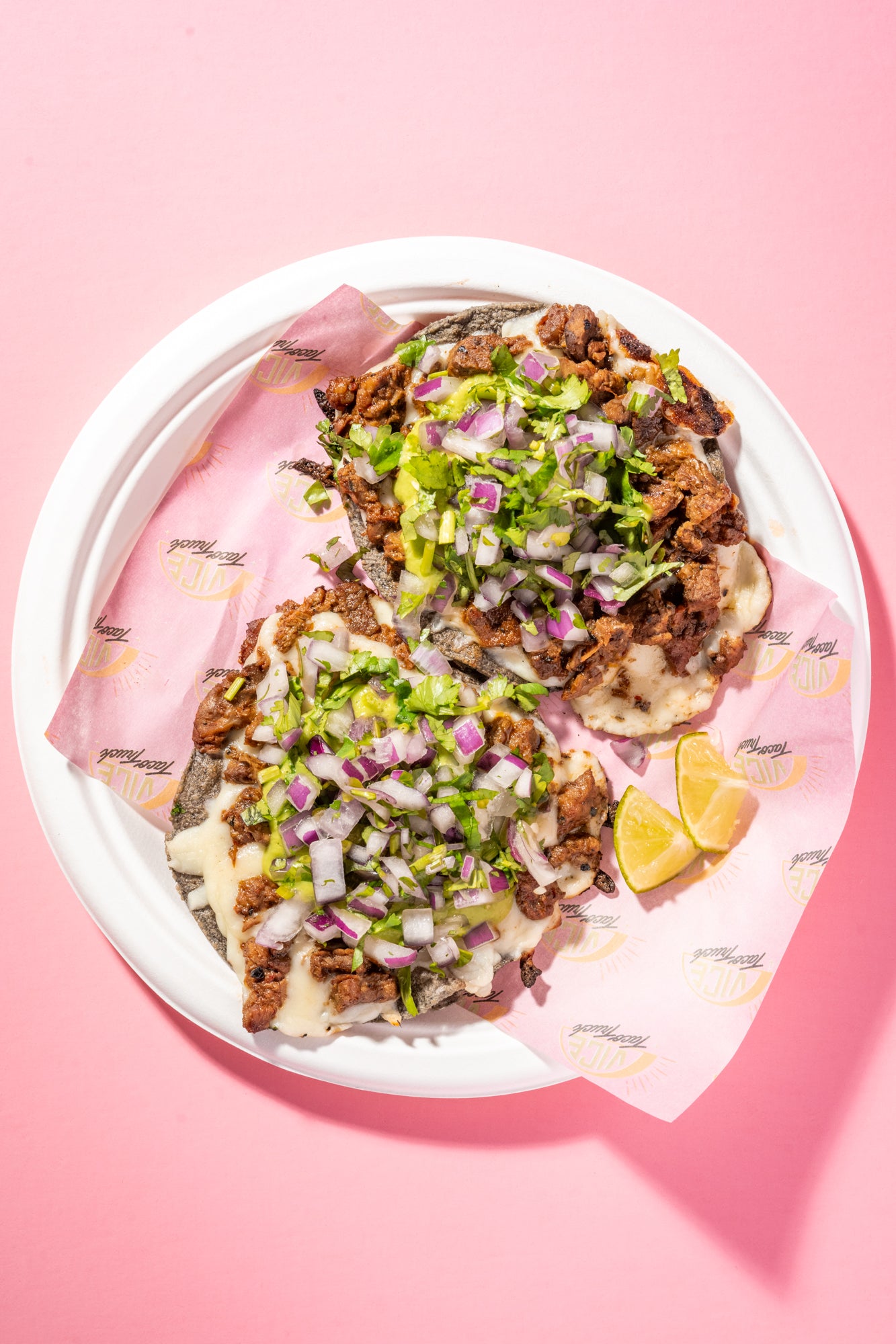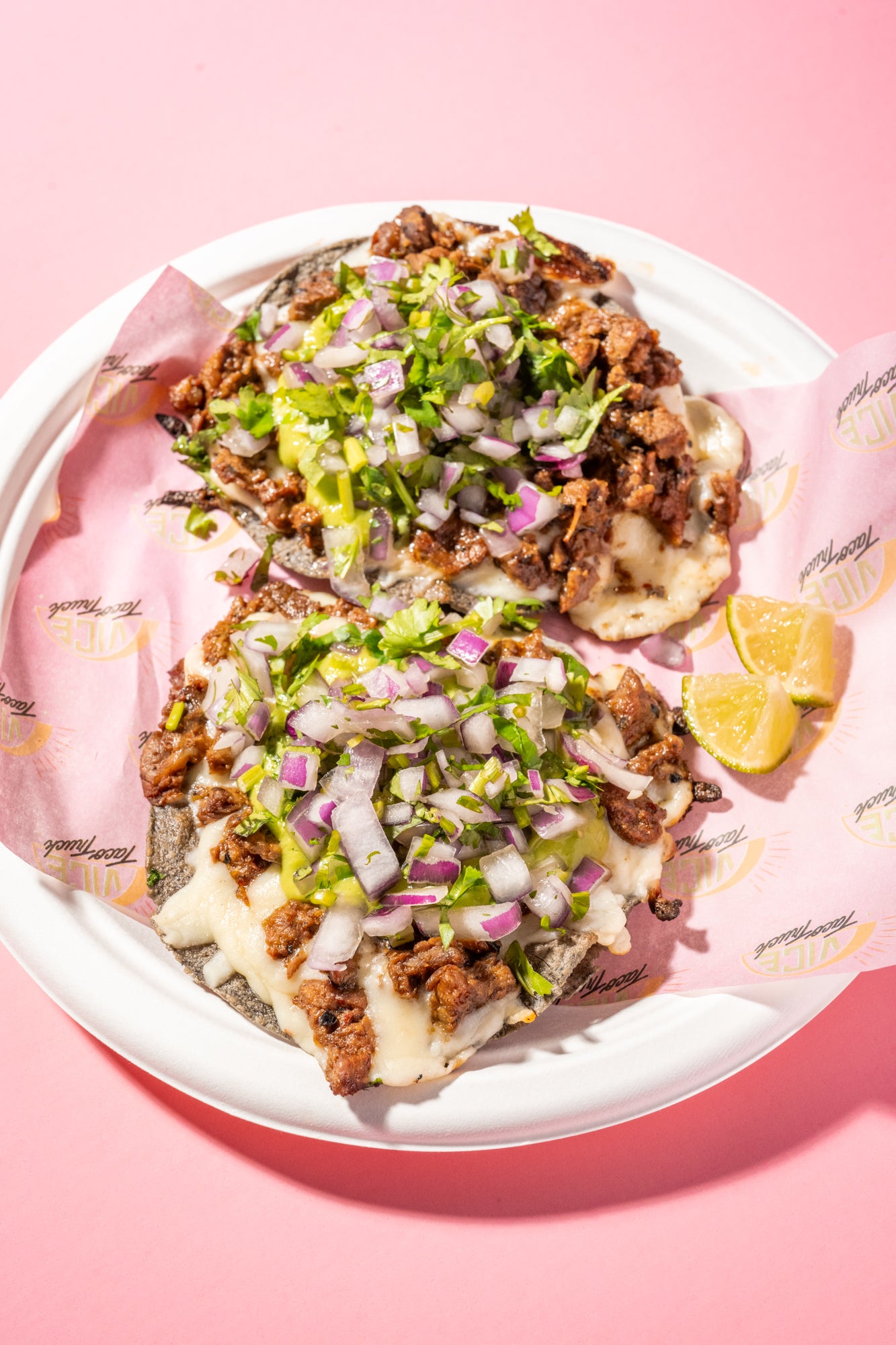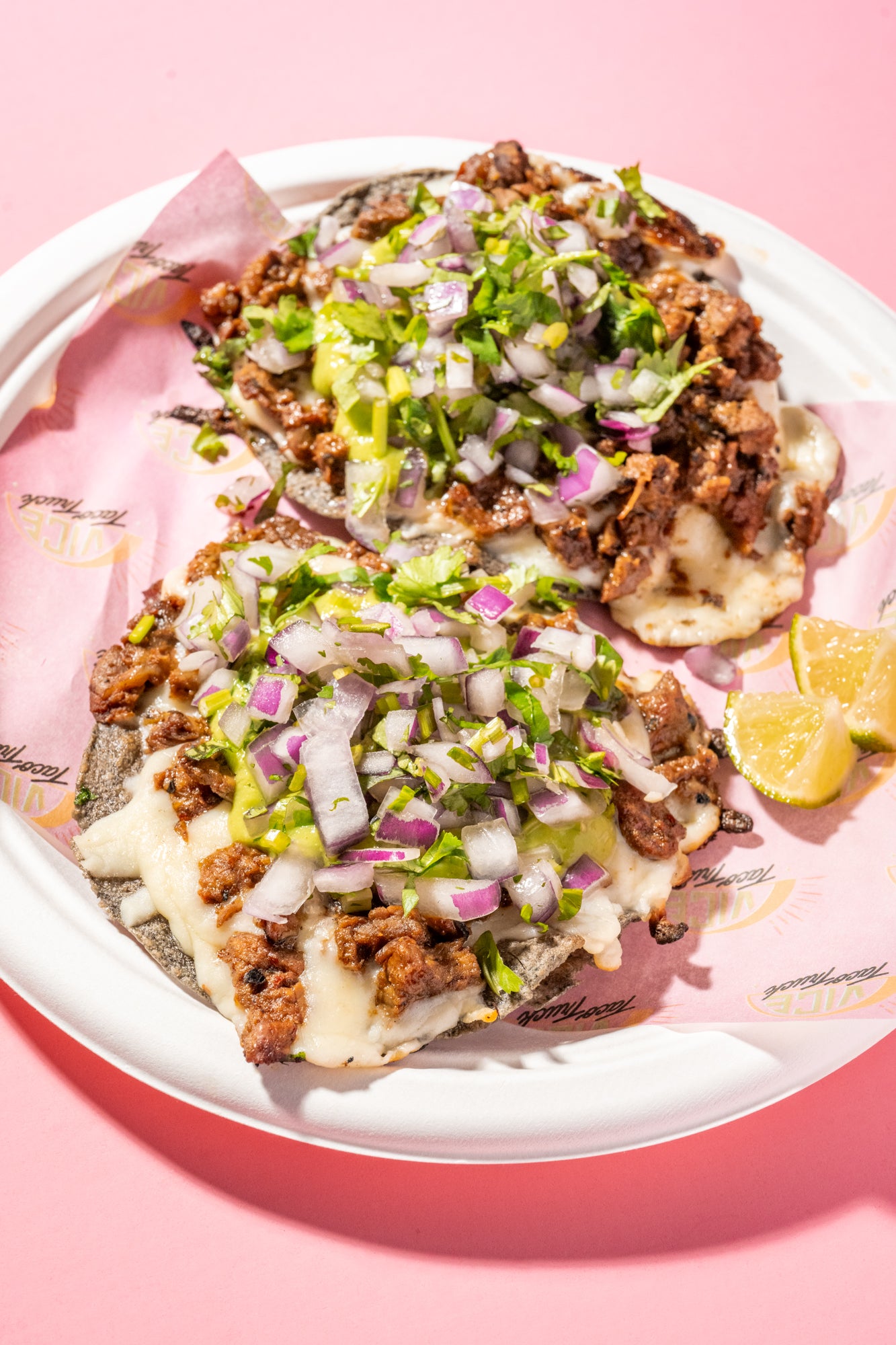 Blue corn tostada layered with melted cheese and your choice of protein.